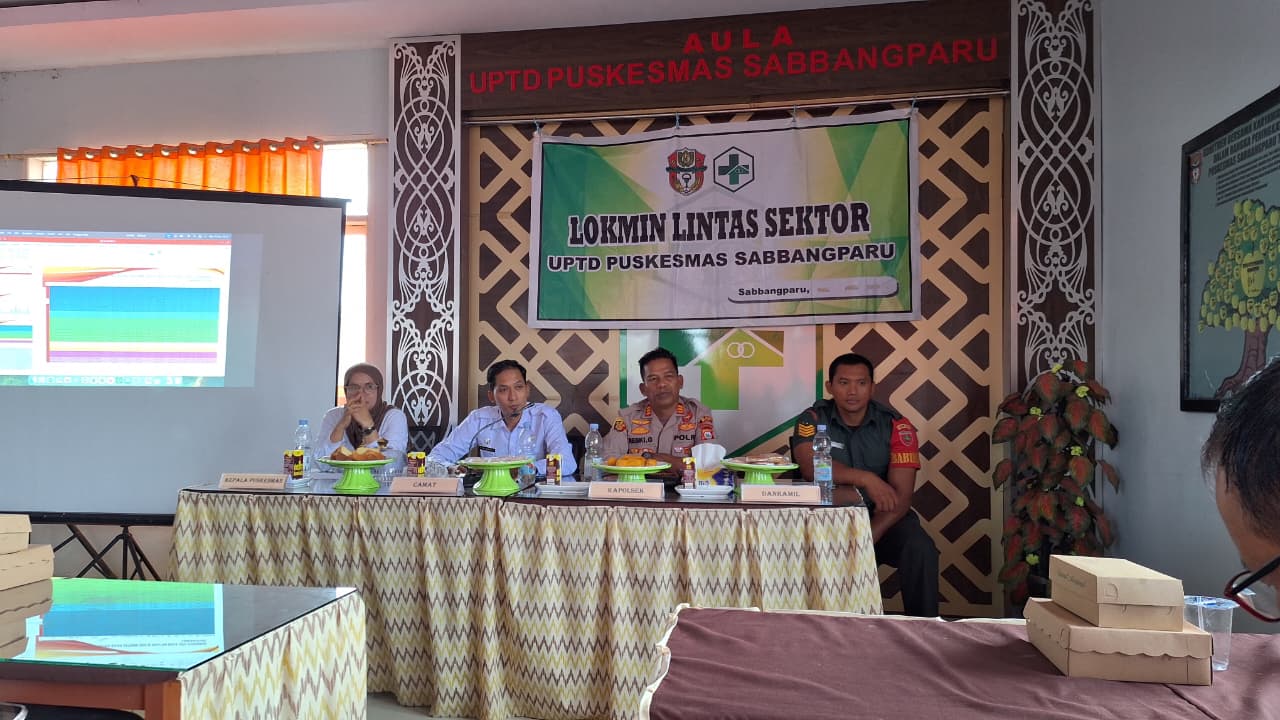 Sabbangparu, 19 November 2025 — UPTD Puskesmas Sabbangparu menggelar kegiatan Lokakarya Mini (Lokmin) Lintas Sektor IV rutin triwulan pada Rabu (19/11/2025) sebagai upaya memperkuat koordinasi dan sinergi antarinstansi dalam meningkatkan pelayanan kesehatan masyarakat. Kegiatan berlangsung di ruang pertemuan Puskesmas Sabbangparu dan dihadiri oleh unsur pemerintah kecamatan, TNI/Polri, perangkat desa, kader kesehatan, serta berbagai mitra sektor terkait.