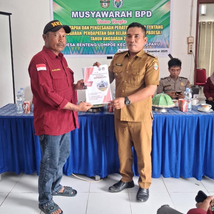 Sementara itu, Kepala Desa Benteng Lompoe menjelaskan bahwa APBDesa yang disahkan telah disusun berdasarkan hasil musyawarah desa, RKP Desa, serta berpedoman pada peraturan perundang-undangan yang berlaku. Ia berharap anggaran yang telah ditetapkan dapat dimanfaatkan secara optimal, transparan, dan akuntabel untuk meningkatkan kesejahteraan masyarakat desa.